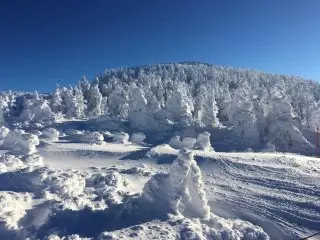山のふもとにはスキー場もあり、多くの人がロープウェイで樹氷高原駅まで上がって、そこからスキーで下山しています!