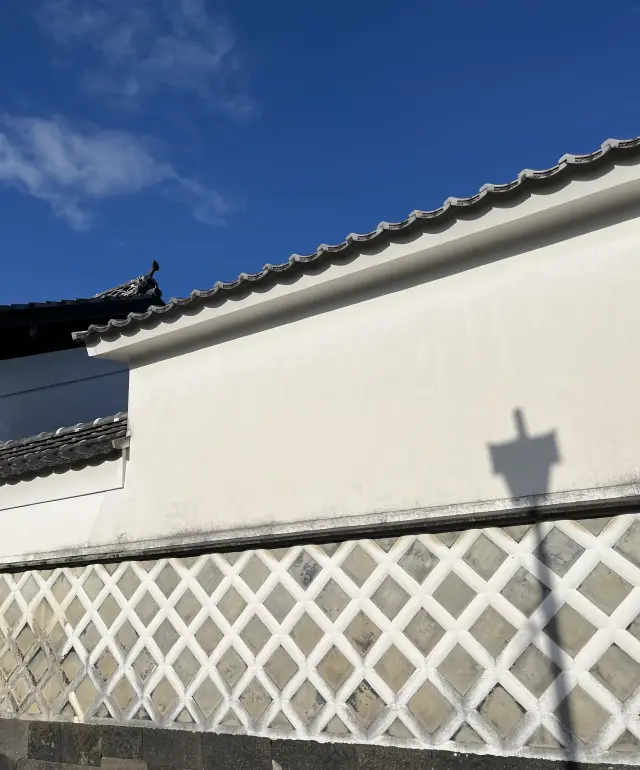塀の外の小路を歩いていると、見上げれば壁に映るさまざまな光と影。ふと足元に目をやると、水路では小さなカニがのんびり歩いていて癒やされました。萩市の菊屋家、本当に素敵です! -